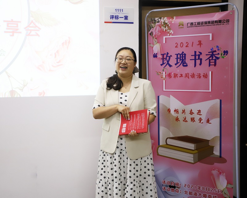 “我不去想是否能夠成功 既然選擇了遠方 便只顧風雨兼程……”8月25日,廣西工程咨詢集團2021年“玫瑰書香”女職工讀書分享會現(xiàn)場,公司女職工通過詩歌朗誦表演、誦讀紅色家書、推薦好書、分享閱讀感悟等形式踴躍參與活動,營造濃郁書香文化,展現(xiàn)新時代巾幗風采。公司黨委書記、董事長、總經(jīng)理龐漢為活動紀念品定制版書簽題寫寄語,向女職工送上祝福。