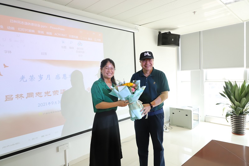 莫道桑榆晚,為霞尚滿天。9月30日上午,公司舉辦資深業(yè)務經(jīng)理呂林同志的退休座談會。公司黨委書記、董事長、總經(jīng)理龐漢,黨委副書記、工會主席左俊蘭,副總經(jīng)理盧德冠,副總經(jīng)理黃燦輝,總工程師王豐贊及相關(guān)部門負責人齊聚一堂,歡敘暢談,以最真摯的情誼祝賀呂林同志光榮退休。