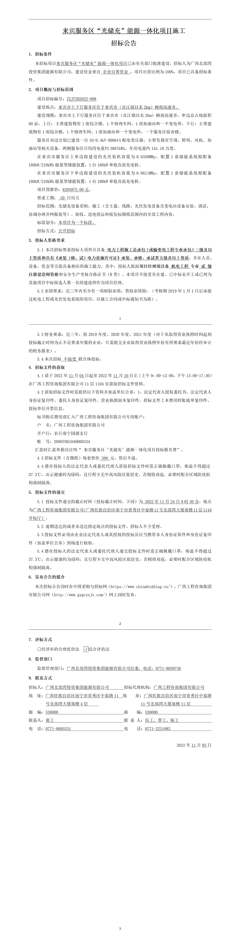 來賓服務(wù)區(qū)“光儲充”能源一體化項目施工招標(biāo)公告