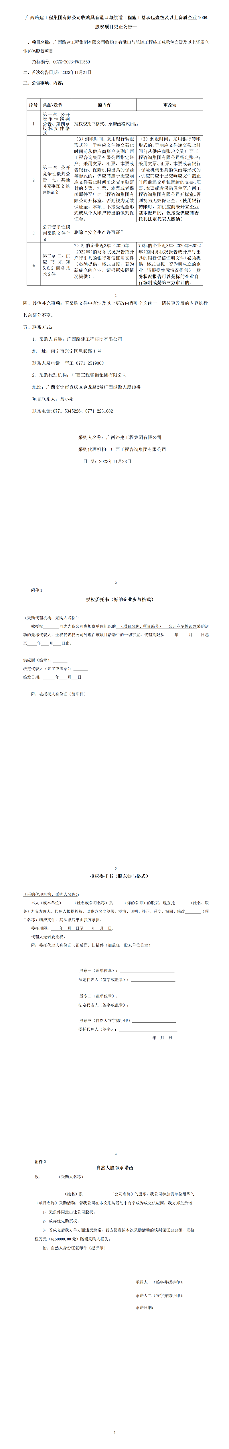 廣西路建工程集團有限公司收購具有港口與航道工程施工總承包壹級及以上資質(zhì)企業(yè)100%股權(quán)項目更正公告一