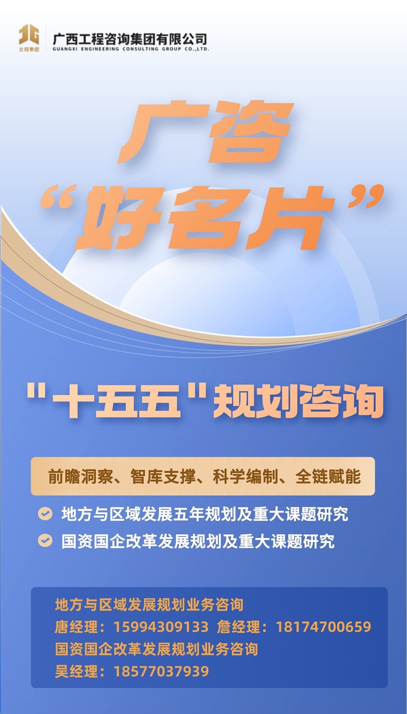經(jīng)歷37年的發(fā)展,廣咨集團(tuán)擁有200+專業(yè)咨詢師、3000+行業(yè)專家、200+資深專家,依托中國工程咨詢協(xié)會(huì)及發(fā)展規(guī)劃專業(yè)委員會(huì)、廣西工程咨詢協(xié)會(huì)、廣西國資國企改革發(fā)展研究會(huì)、廣西國資國企智庫聯(lián)盟理事長單位、廣西對(duì)外經(jīng)濟(jì)合作保障服務(wù)中心等智庫平臺(tái),立足各領(lǐng)域前沿,聯(lián)合發(fā)揮各專業(yè)所長,為“十五五”規(guī)劃編制工作提供智力支撐。
