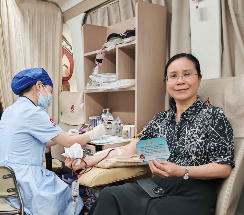 ▲黨員干部積極參加獻血活動